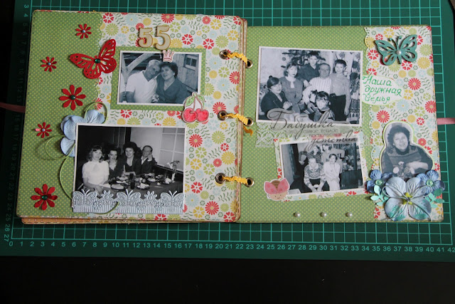 И опять повод День Рождения) На этот раз у бабушки и решила я сделать свой первый самостоятельный альбом 20*20 на 6 листах. Делала долго, давался трудно, но эмоции испытывала неописуемые. Разглядывала фотографии ее детства, юности, взросления, после этого у меня было ощущение что я стала гораздо ближе к своей бабушке, вообщем словами не передать и я очень рада что решилась на такое. Как мне самой кажется, что каждая следующая страничка лучше предыдущей, видать опыта набиралась))))) Смотрите результат, правда с кольцами зафоткать забыла...голова дырявая)